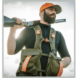 Gilet de chasse confortable pour les amateurs de chasse, fabriqué en DAIM et moitié MAR-TEX RIPSTOP. Comprend des bretelles ajustables respirantes avec des boucles pour outils et une sangle de poitrine avec un sifflet d'urgence. Il possède également 2 poches avant et une poche intérieure en mesh pour assurer une bonne ventilation du dos. Equipé d'une large poche arrière en DAIM pour ranger le gibier, de 2 poches intérieures et de 3 bandes amovibles haute visibilité (2 à l'avant et 1 à l'arrière) et 2 amovibles sur les bretelles.